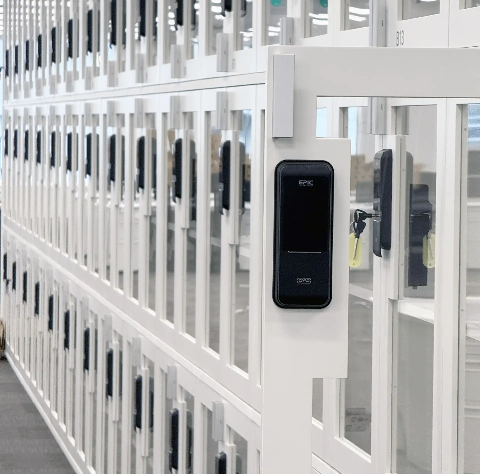 トランクルーム、セルフストレージの各ユニット扉、入口、監視室、通用口、事務室、清掃用具室など